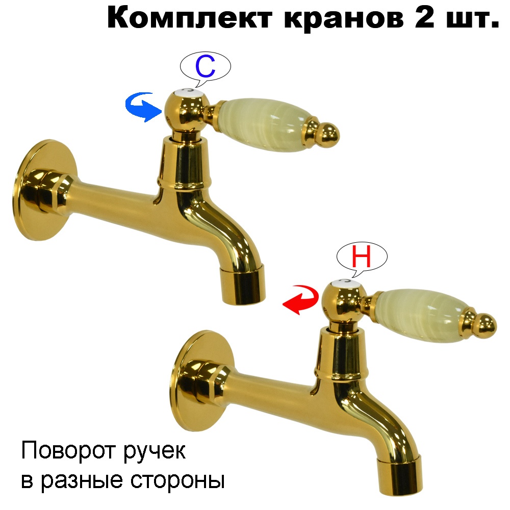 Комплект кранов для бани FKS-203KN-2 с нефритовой ручкой, золотой