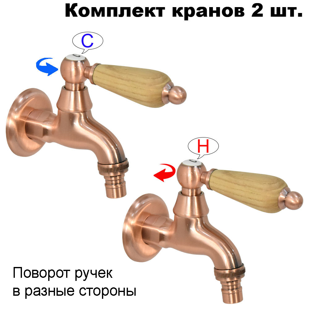 Комплект кранов для бани с деревянной ручкой FKS-70DT-2 медный